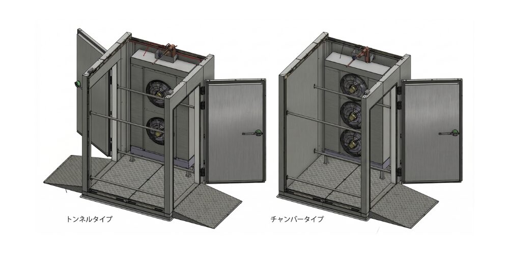 | 本体サイズ(mm) | W各機種寸法図参照 × D各機種寸法図参照 × H2400mm(本体)+450(電装BOX) ※床埋設の場合は-100mm |